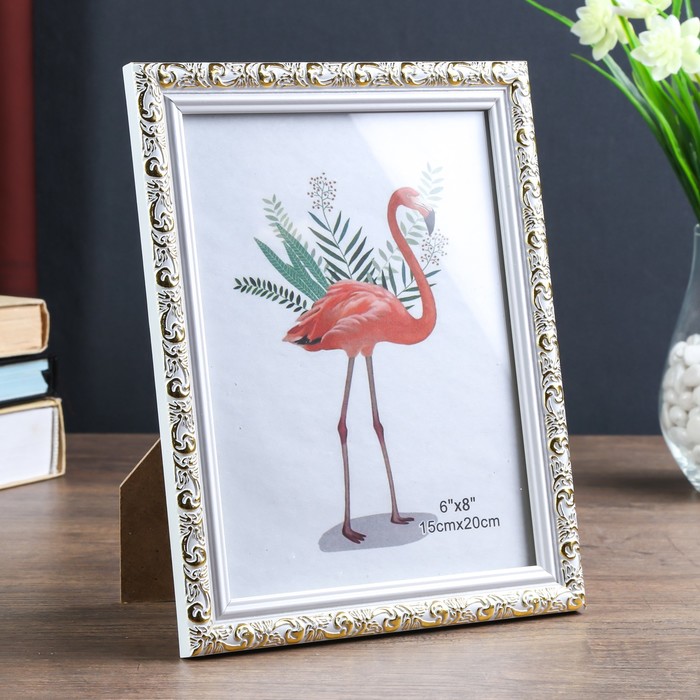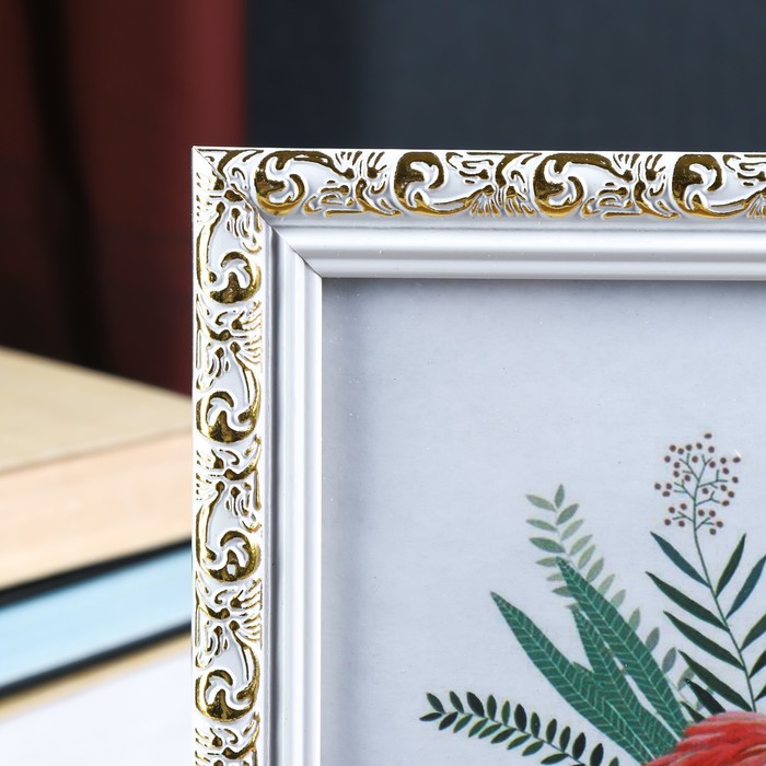 Фоторамка пластик 15х20 см "Валентайн" белая с золотым рисунком 23х18 см