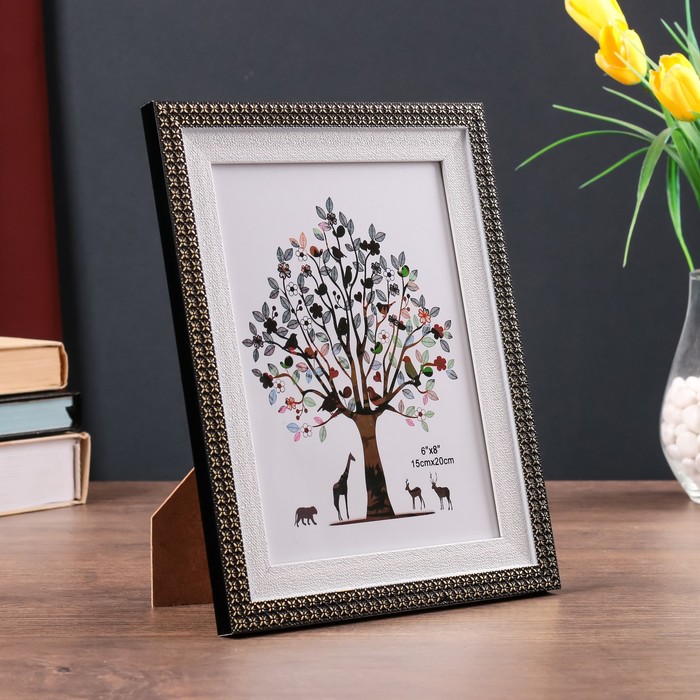 Фоторамка пластик 15х20 см "Золотые крестики" чёрная с белым 24,8х19,8 см