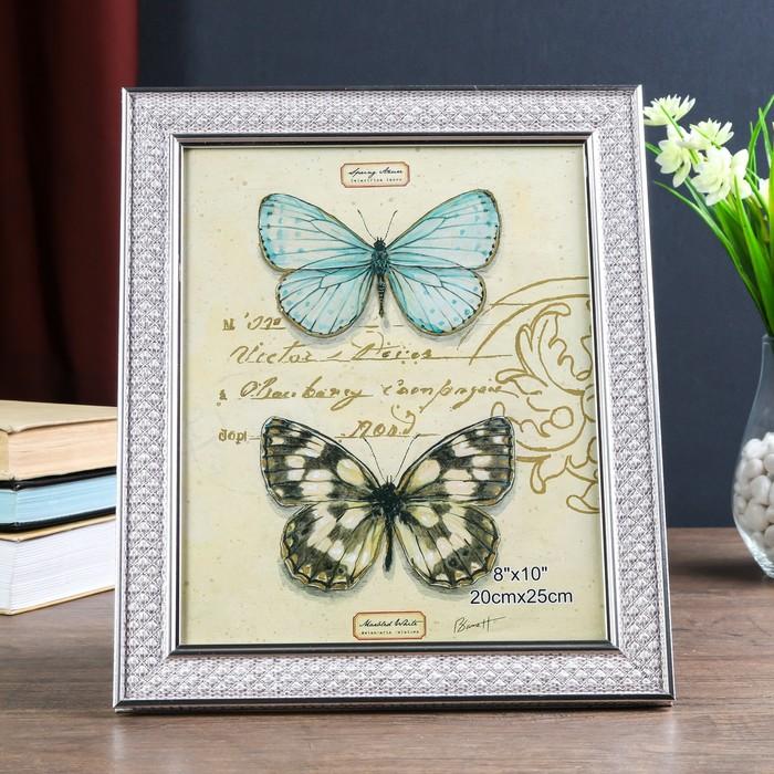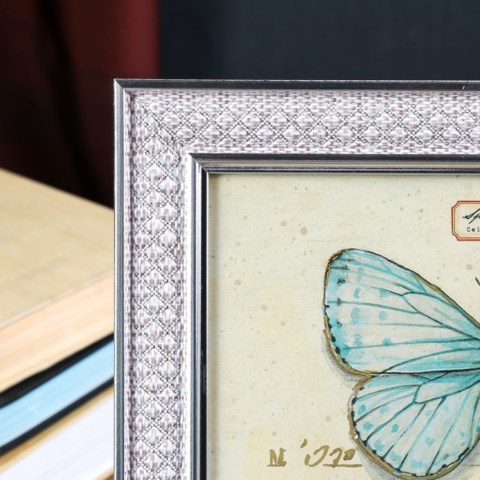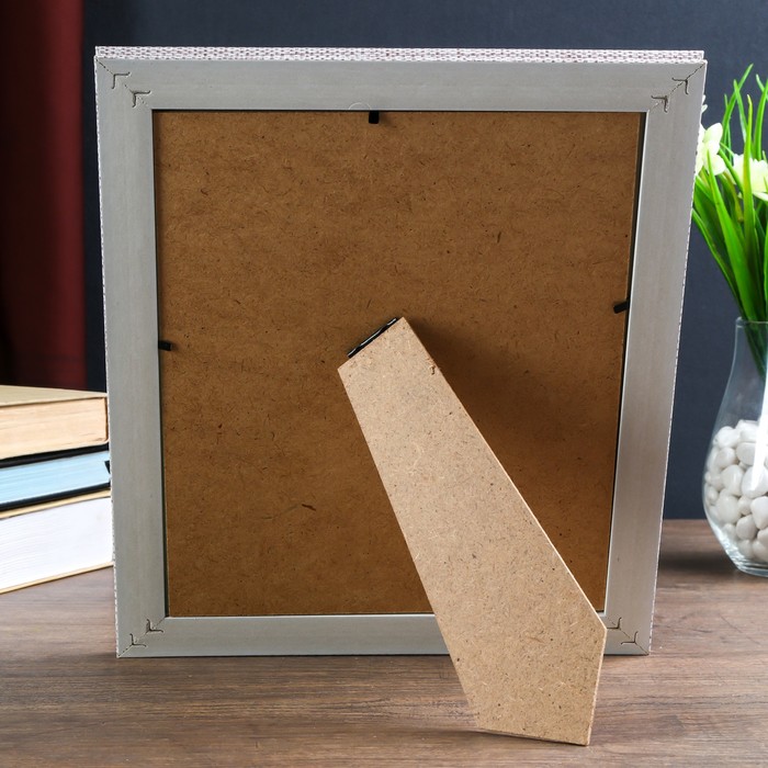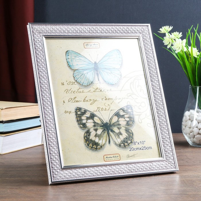 Фоторамка пластик 20х25 см "Белые ромбы" с серебристым обрамлением 30х25 см