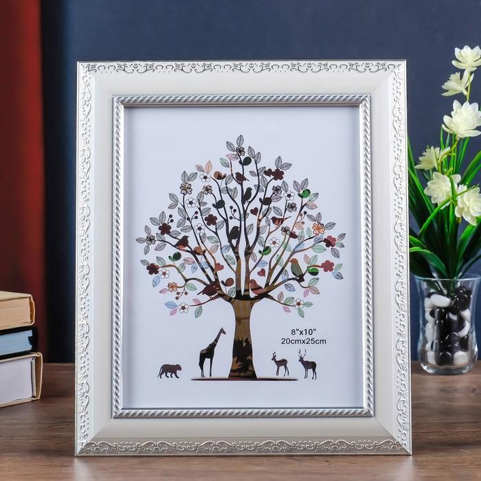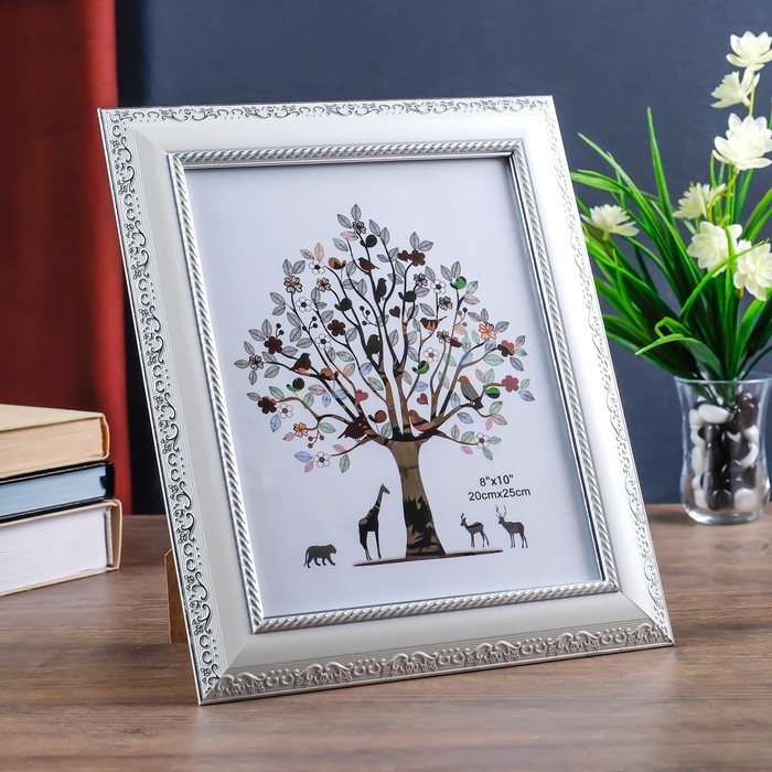 Фоторамка пластик 20х25 см "Изобилие" белая с серебром 32х27 см