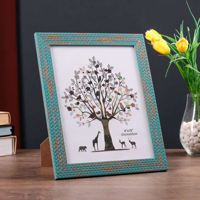 Фоторамка пластик 20х25 см "Пшеница" синяя с золотом 29х24 см
