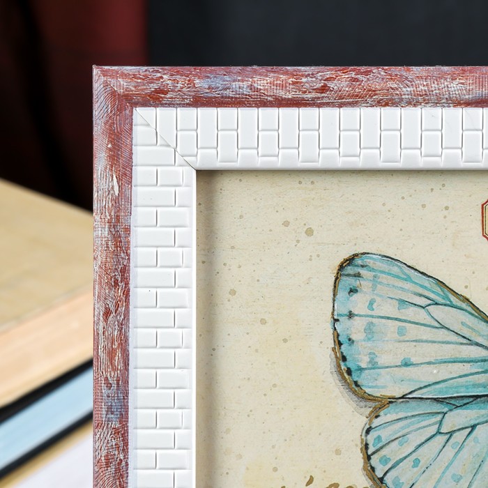Фоторамка пластик 20х25 см "Шарль" кремовые кирпичики с розовым 29х24 см