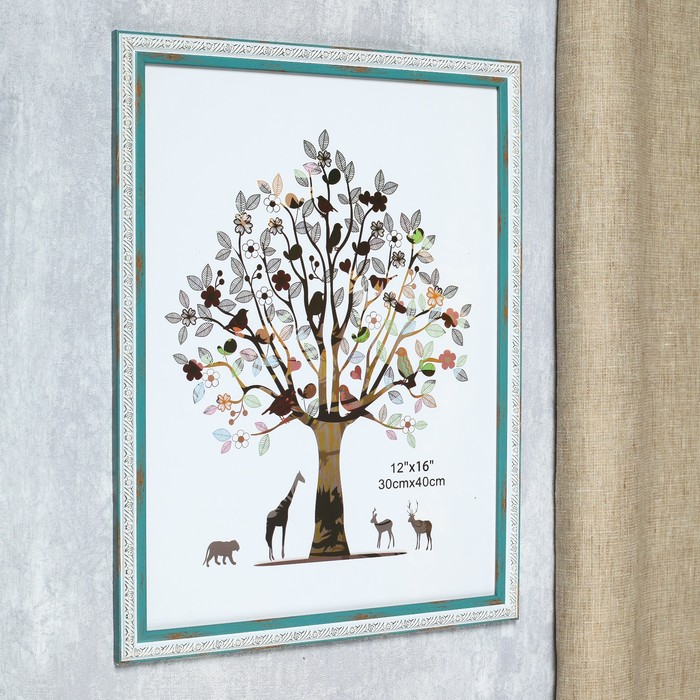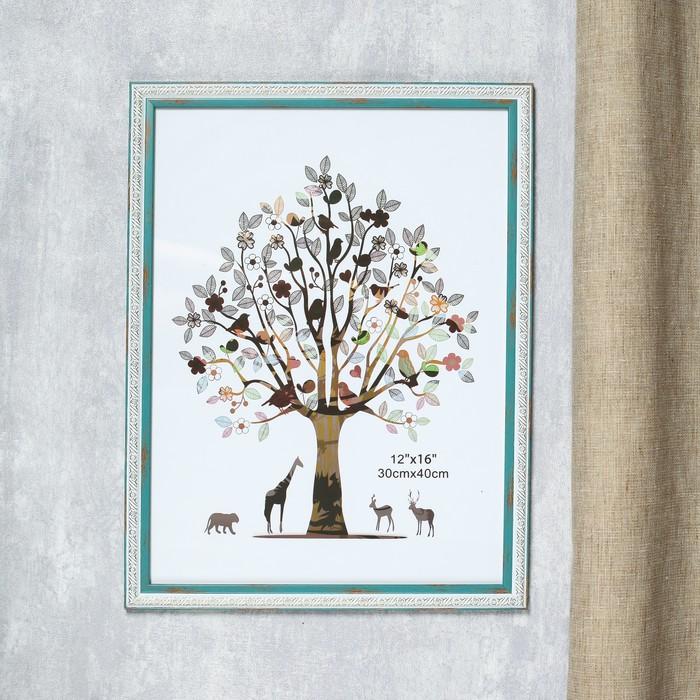 Фоторамка пластик 30х40 см "Физалия" голубая с золотыми цветами 42,8х32,8 см