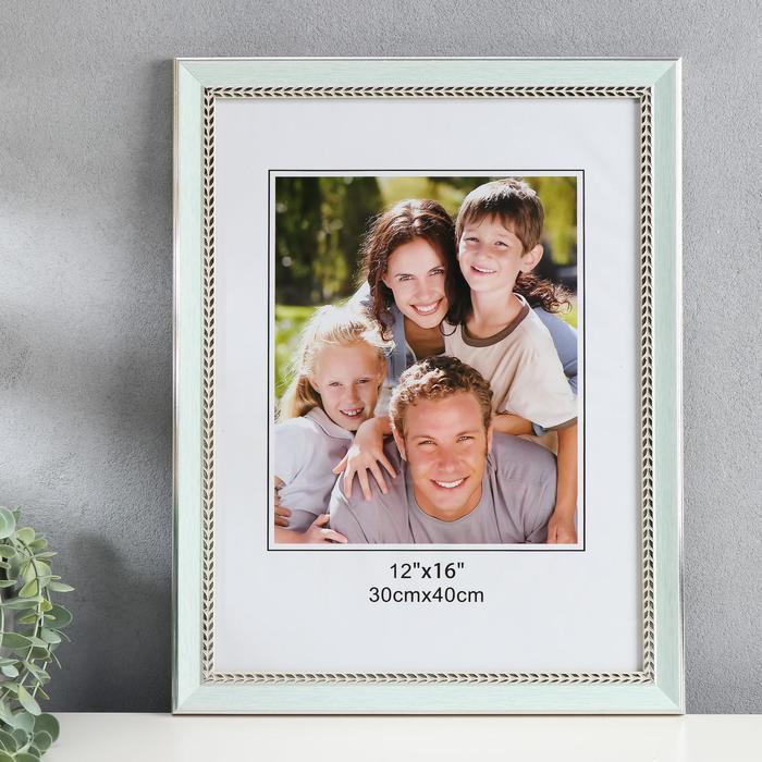Фоторамка пластик 30х40 см "Нежно-голубая с серебристой косичкой" 44,5х34,5 см