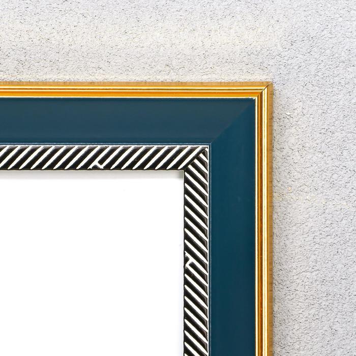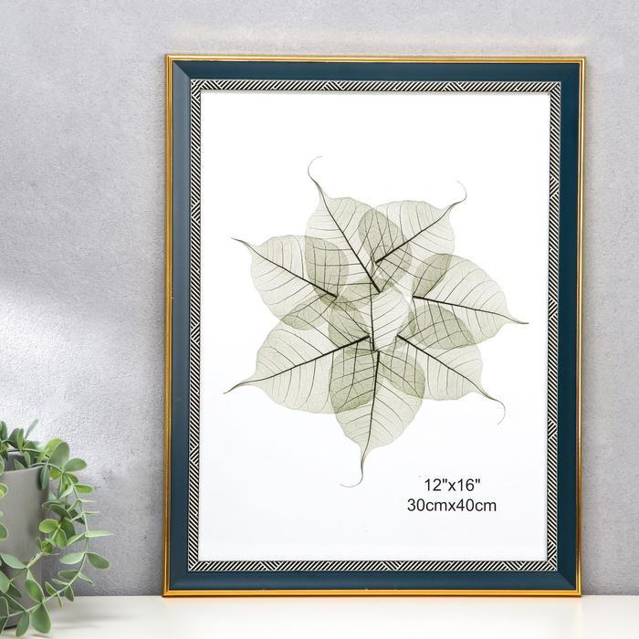 Фоторамка пластик 30х40 см "Синяя с синими черточками на белом" 44,6х34,6х1,5 см