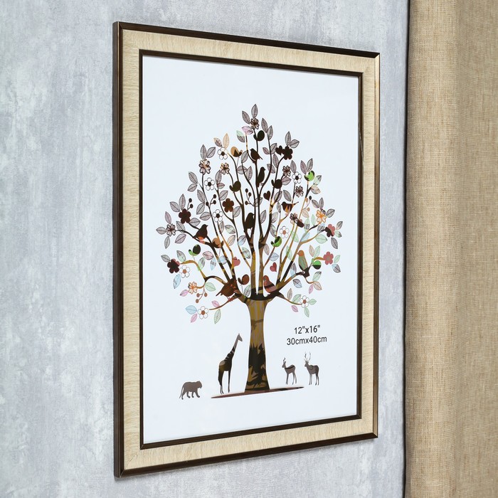 Фоторамка пластик 30х40 см "Жатая бумага" песочная с золотым обрамлением 44х34 см