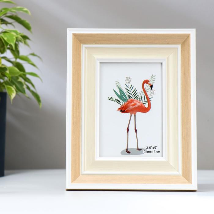 Фоторамка пластик 9х13 см "Двойной беж с белой полосой" 19,6х15,7х2 см