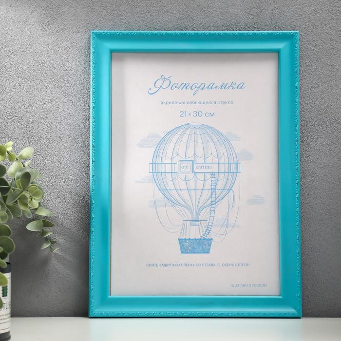 Фоторамка пластик L-6 21х30 см, бирюзовый, с небьющимся стеклом