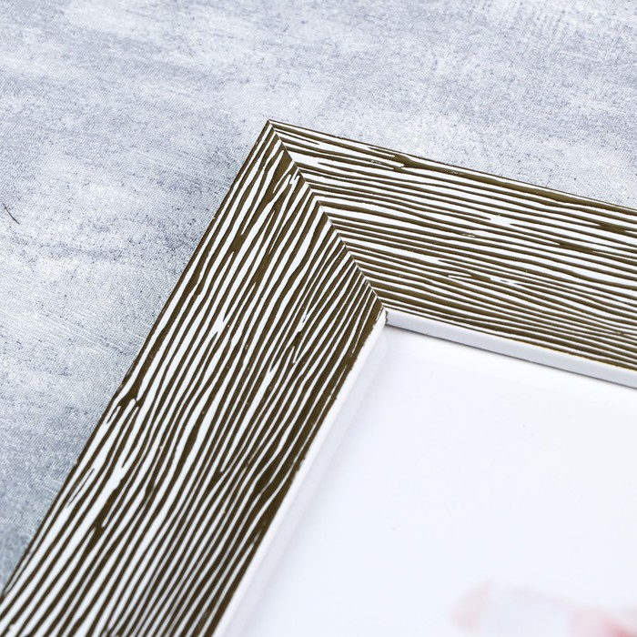 Фоторамка пластик с крючками 13х18 см "Зебра" золото на белом 18х23х3,5 см