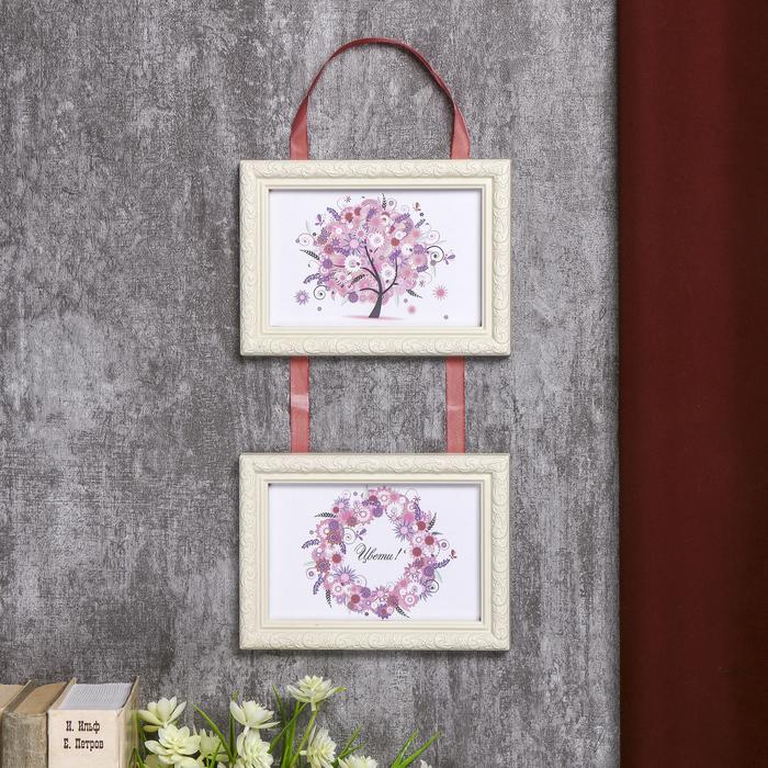Фоторамка 20х37 см на 3 фото 10х15 см цветочный узор