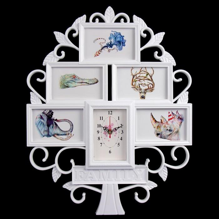 Часы настенные, серия: Фото, "Дерево", 5 фоторамок, 56х45 см