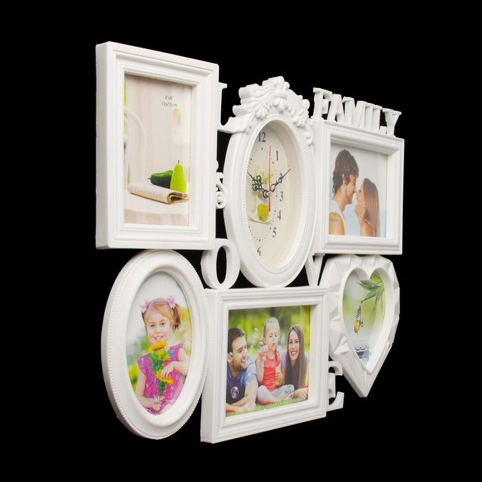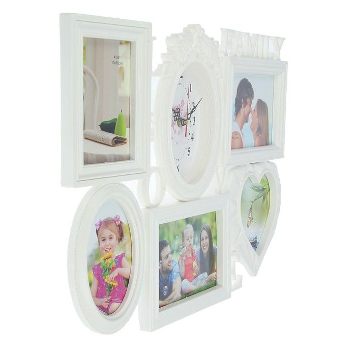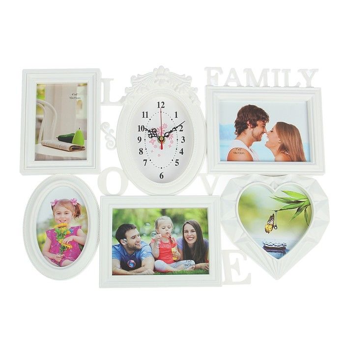 Часы настенные, серия: Фото, "Family Love", 5 фоторамок, белые, 38х54 см, микс