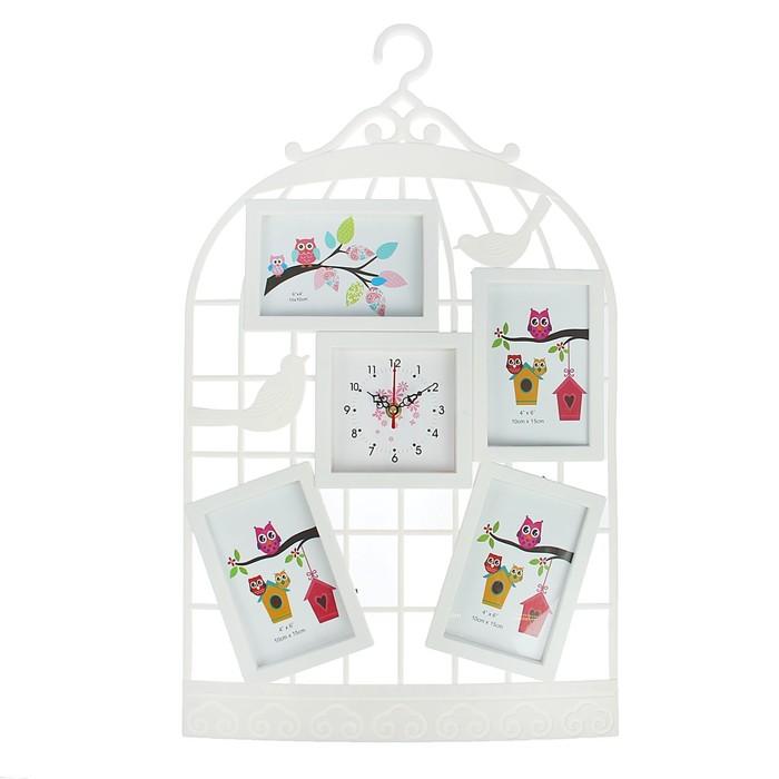 Часы настенные, серия: Фото, "Клетка", 4 фоторамки, белые, 38х62 см, микс
