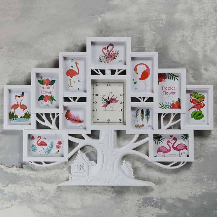 Часы настенные, серия: Фото, "Семейное дерево", плавный ход, 1АА, 82х3х58 см, белые