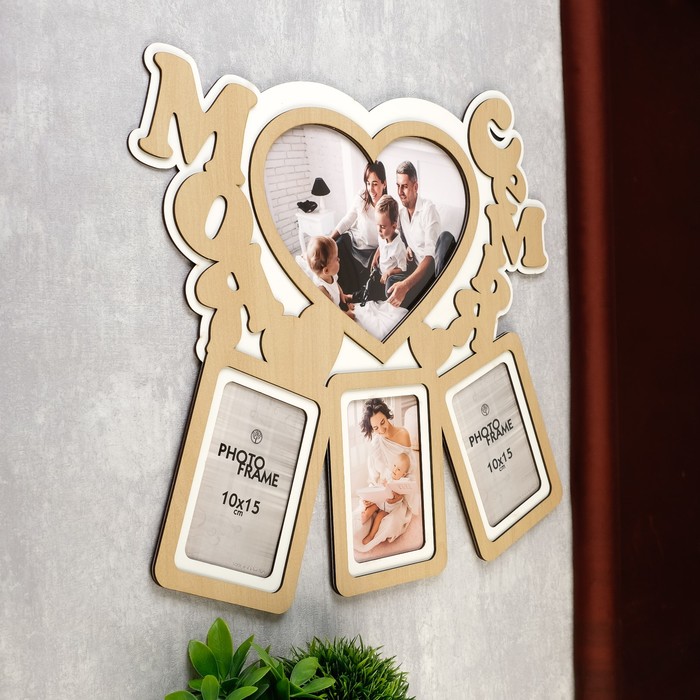 Фоторамка ХДФ "Моя семья" на 4 фото МИКС, 1 фото 21х30 см, 3 фото 10x15 см