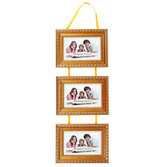 Фоторамка на 3 фото 10х15 см "Тройная с тесьмой", орех