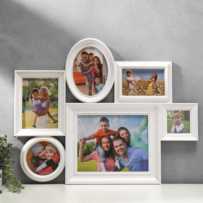 Фоторамка на 6 фото 10х10 см, 12х12 см, 10х15 см, 13х18 см, 20х25 см "Классика" белая