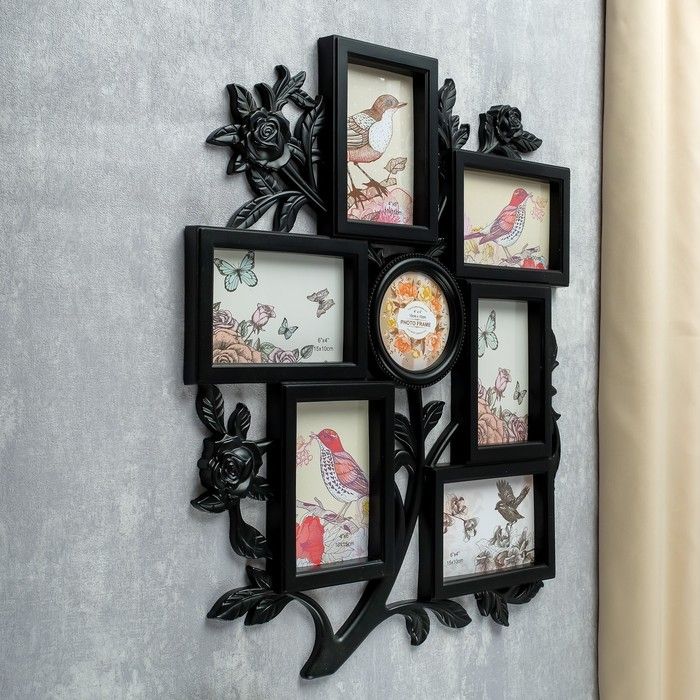 Фоторамка на 7 фото 10х10, 10х15 см "Розовый сад" чёрная 56х46х3 см