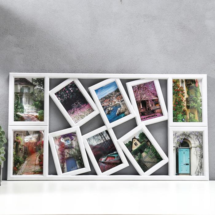 Фоторамка пластик на 10 фото 10х15, 13х18 см "Воспоминания" белая 40х73,5 см