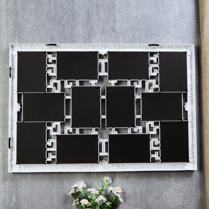 Фоторамка пластик на 12 фото 10х15 см "Лабиринт" белая с золотым узором 56,5х75,5 см