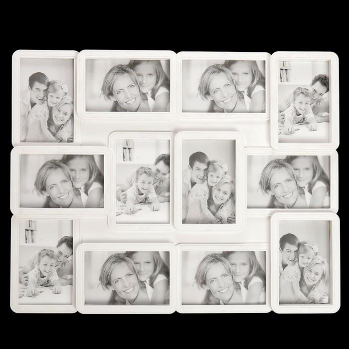 Фоторамка пластик на 12 фото 10х15 см "Закруглённые углы" белая 45х55 см