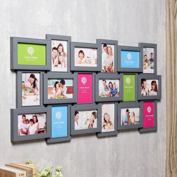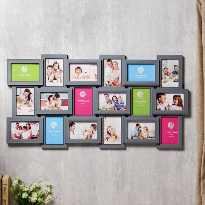 Фоторамка пластик на 18 фото 10х15 см "Генеалогическое дерево" серая 46х89,5 см
