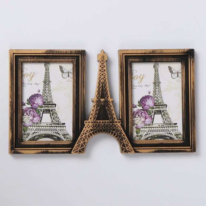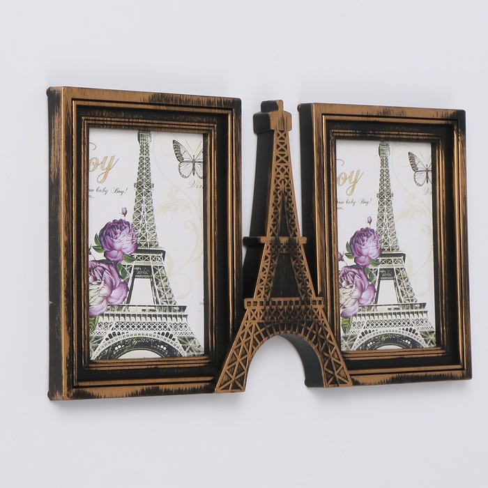 Фоторамка пластик на 2 фото 10х15 см "Эйфелева башня" тёмное золото 18,5х33 см