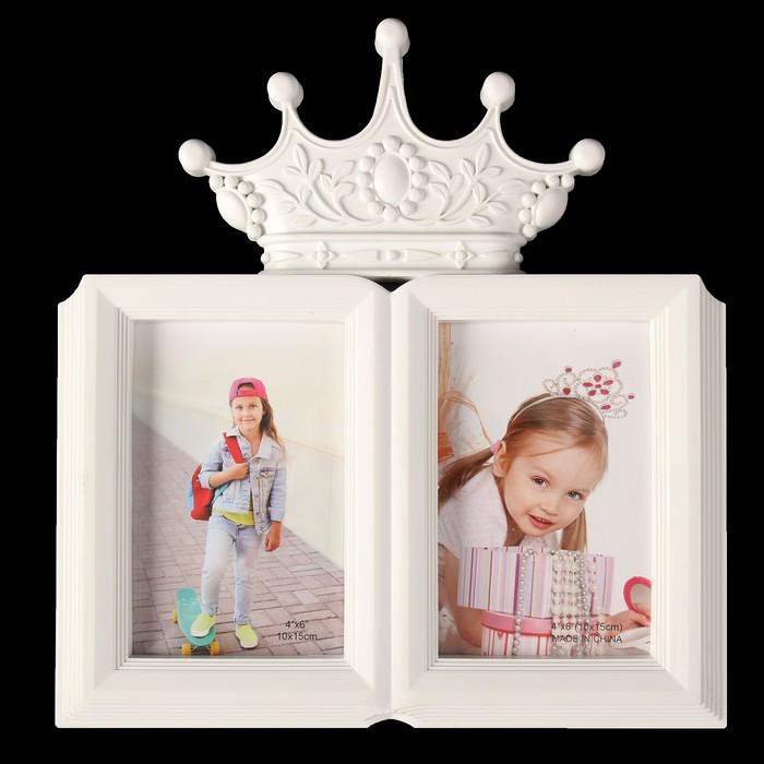 Фоторамка пластик на 2 фото 10х15 см "Корона" белая 30х28 см