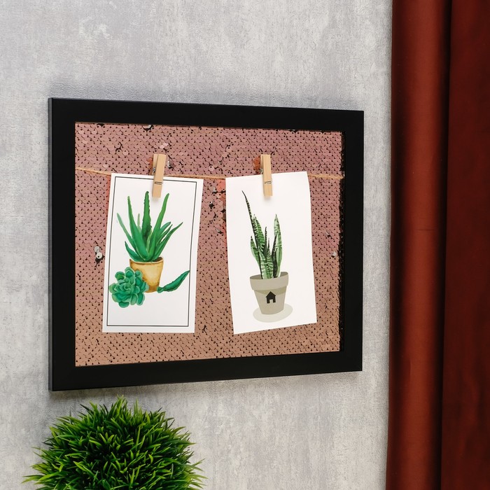 Фоторамка пластик на 2 фото до 10х15 см "Пайетки золото" 23х28 см