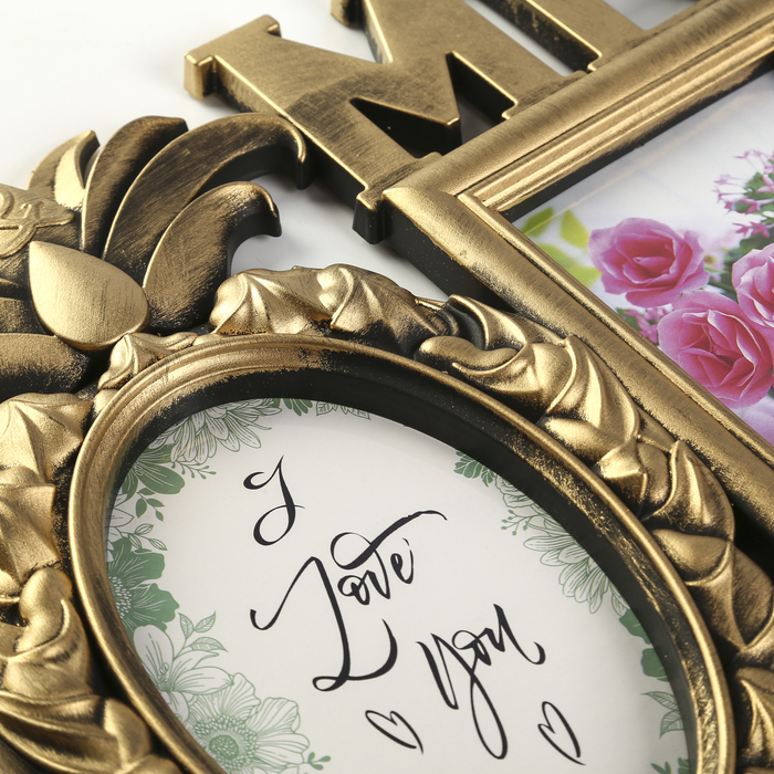 Фоторамка пластик на 3 фото 10х15 см "Ананас" тёмное золото 25х40 см