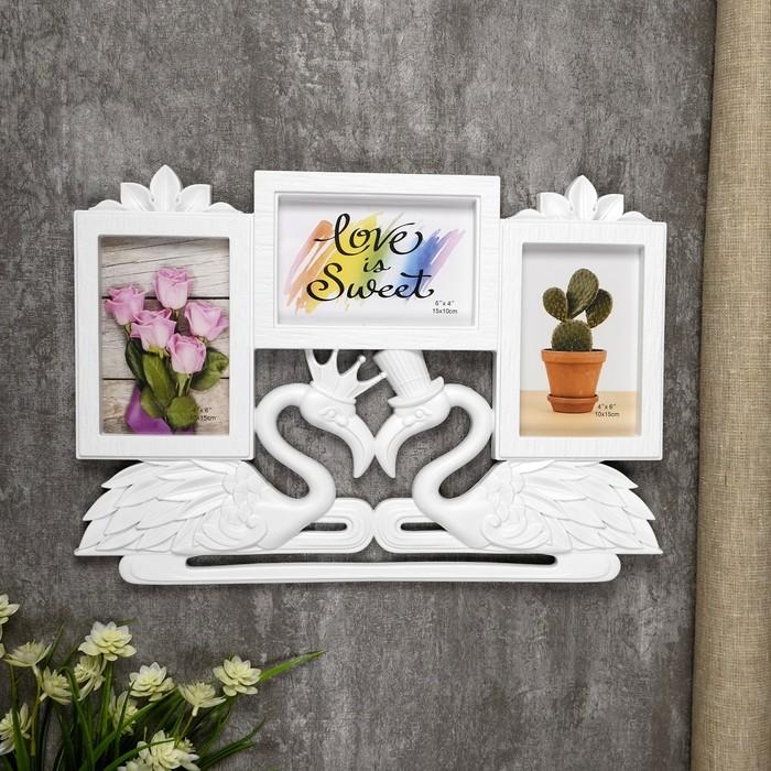 Фоторамка пластик на 3 фото 10х15 см "Фламинго" белая 29х42 см