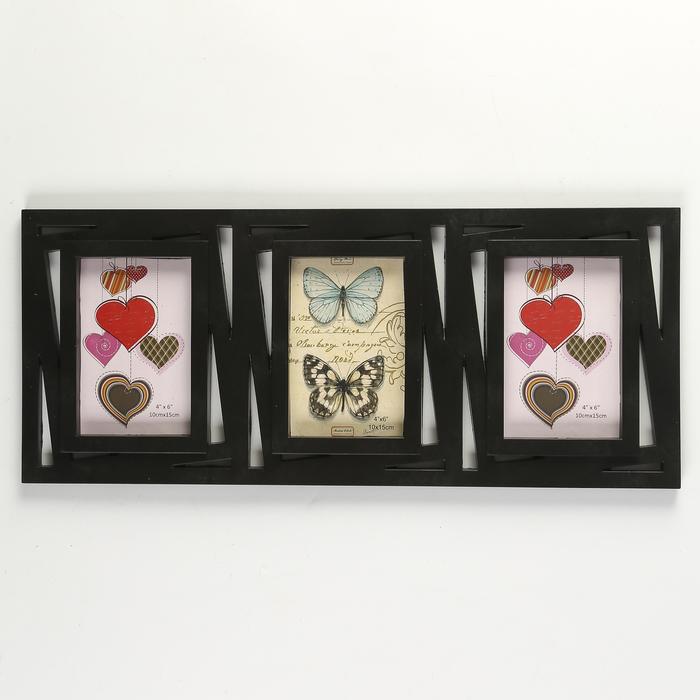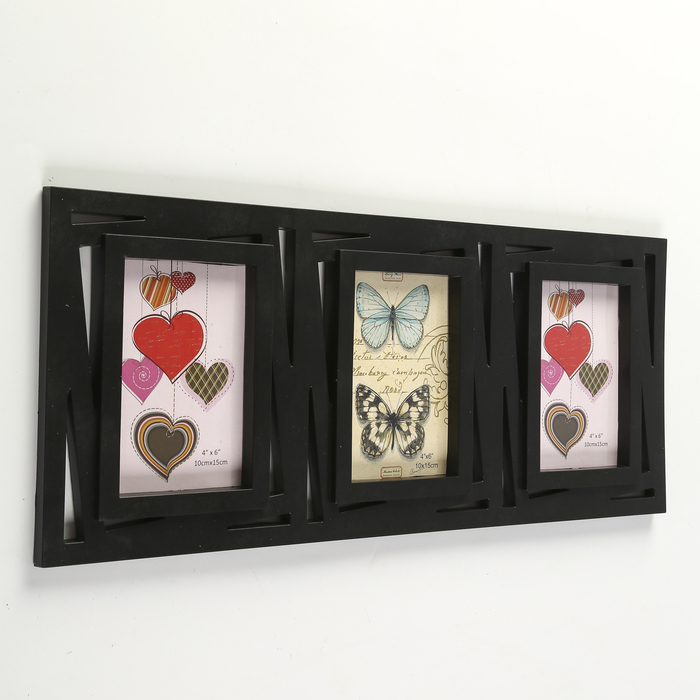 Фоторамка пластик на 3 фото 10х15 см "Геометрия - прямые линии" чёрная 22х51 см