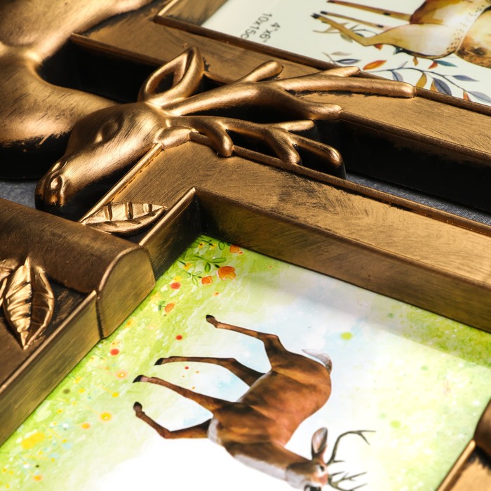 Фоторамка пластик на 3 фото 10х15 см "Лесной олень" тёмное золото 28х36,5х3 см
