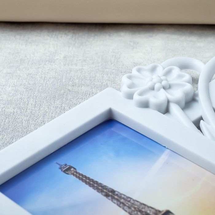Фоторамка пластик на 3 фото 10х15 см "Незабудки и бант" белая 21,5х41 см