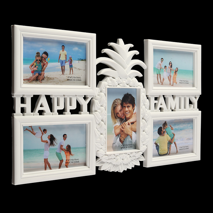 Фоторамка пластик на 5 фото 10х15 см "Ананас" белая 30,5х50 см