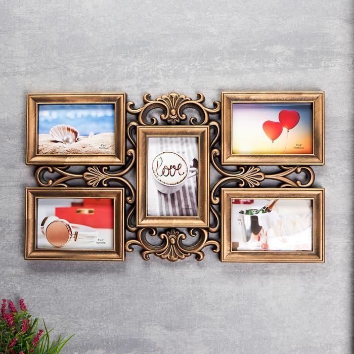 Фоторамка пластик на 5 фото 10х15 см "Узорная" тёмное золото 30,5х53 см