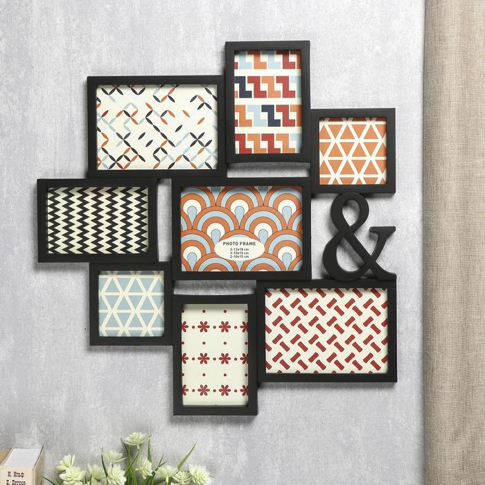 Фоторамка пластик на 8 фото 10х10, 10х15, 13х18 см "&" чёрная 50,5х51,5х2 см