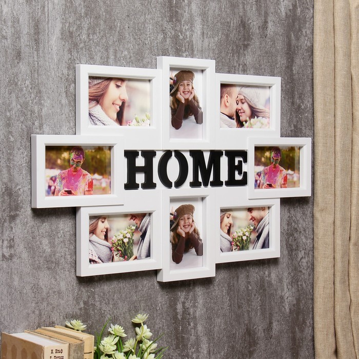 Фоторамка пластик на 8 фото 10х15 см "Дом" белая 42,5х65 см