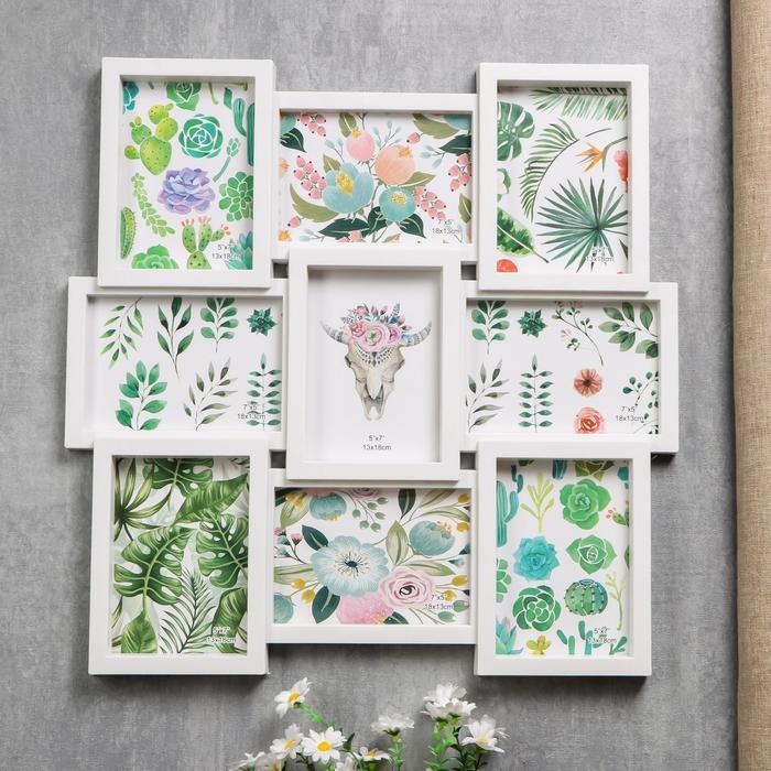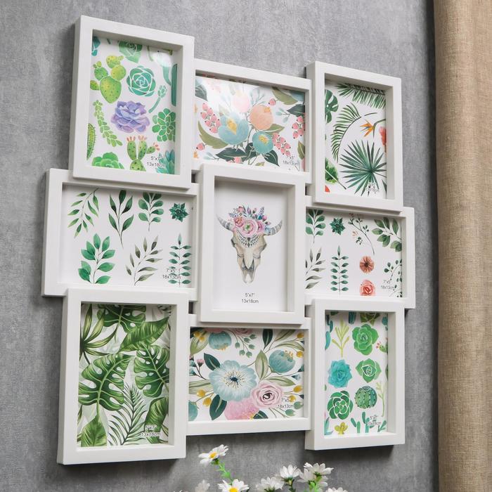 Фоторамка пластик на 9 фото 13х18 см "Большая семья" белая 52х52 см