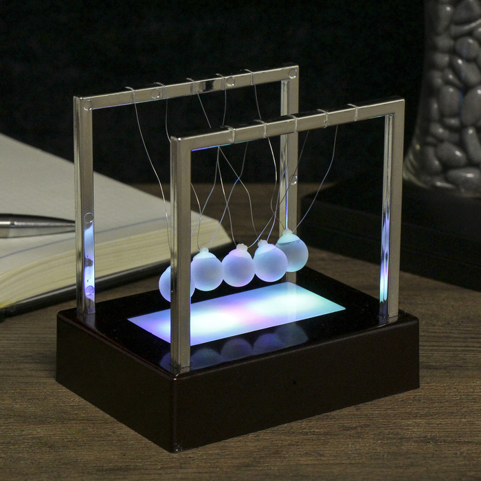 Шары Ньютона сегодня пользуется огромной популярностью у наших клиентов. Система состоит из подставки и пяти металлических шариков, которые подвешены на леске. Для активации маятника вам необходимо отвести один шарик в сторону и отпустить его. Затем наблюдайте, как шарики с противоположной стороны начинают двигаться в зеркальном отображении с той же скоростью. Через определенное время шарики останавливаются. Продолжительность движения зависит от размера и веса шариков: чем тяжелее и больше шарики, тем дольше процесс, и наоборот.