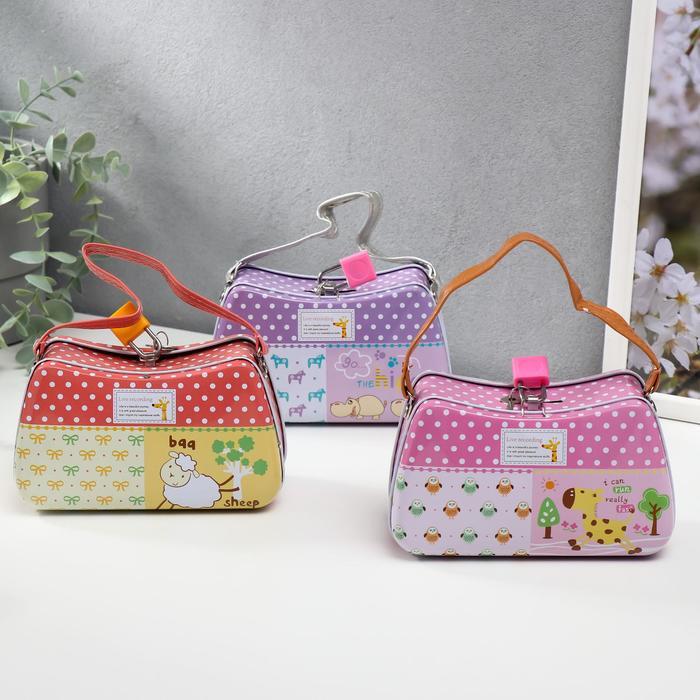 Копилка металл "Сумочка со зверятами" МИКС 8,5х14,5х6,5 см