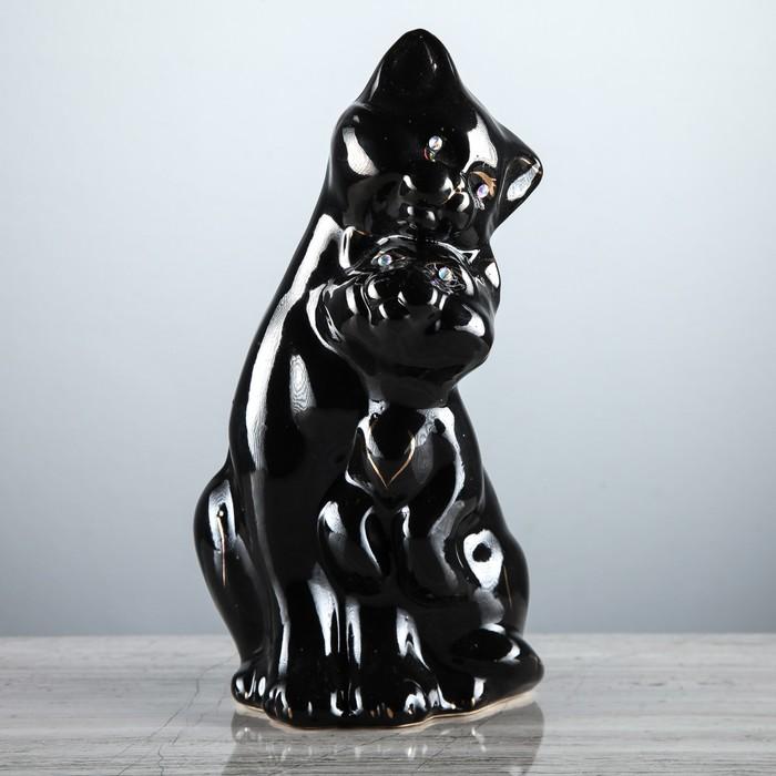 Копилка "Кот с птицей", под шамот, чёрный, 19,5 см, микс
