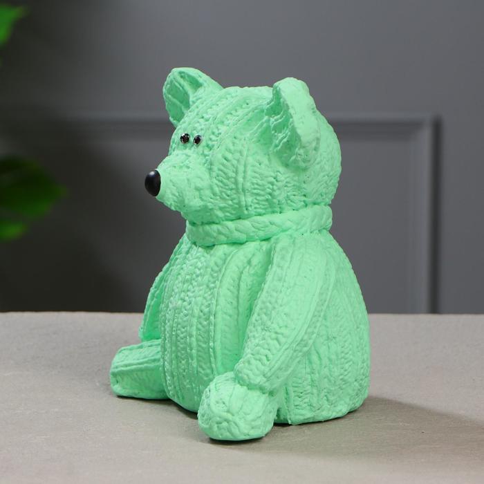 Копилка "Вязаный мишка" зелёный цвет, 19 см