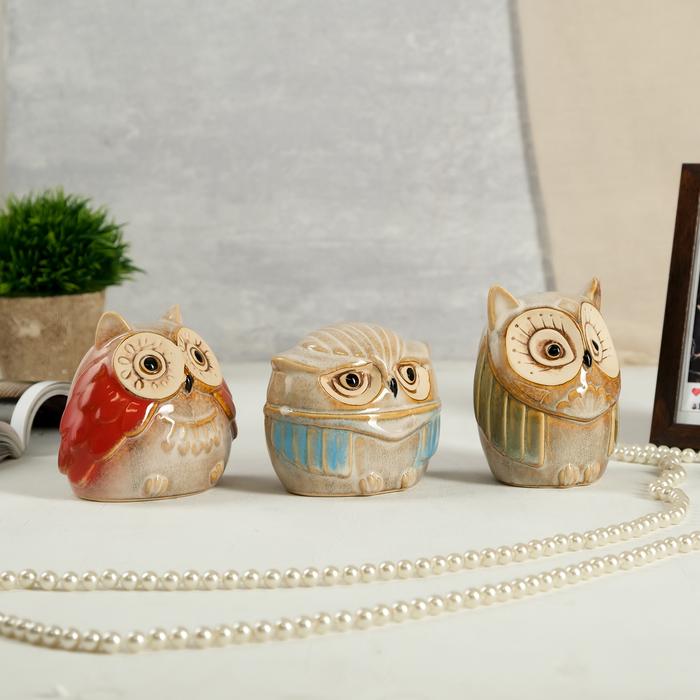 Сувенир керамика копилка "Совушки" шамот глянец набор 3 шт 10х8х10 см