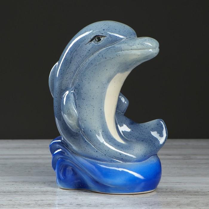 Копилка "Дельфин на волне", глазурь, серый цвет, 25 см