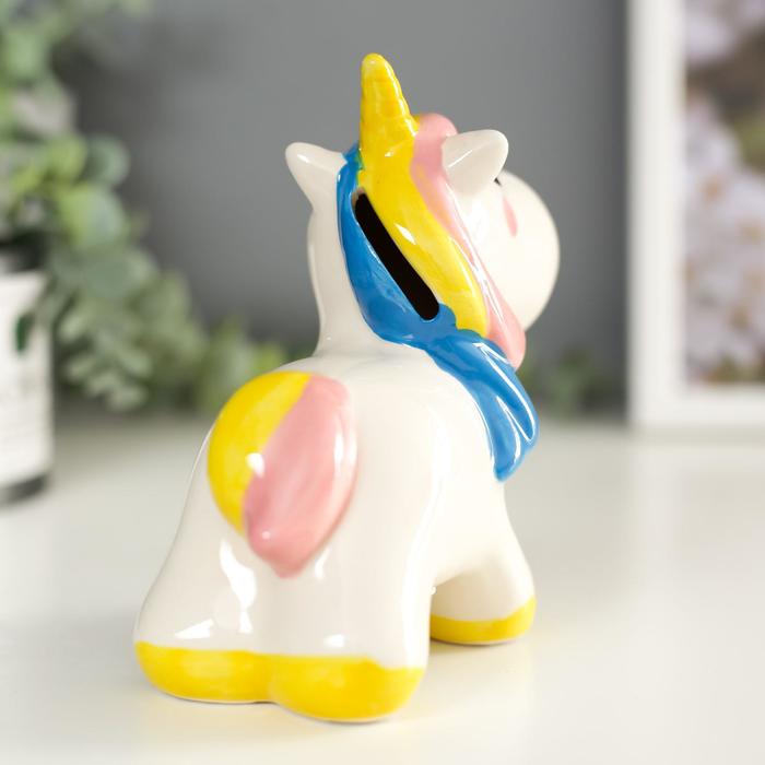 Копилка керамика "Единорог с радужной чёлкой и хвостом" 14х6х14 см