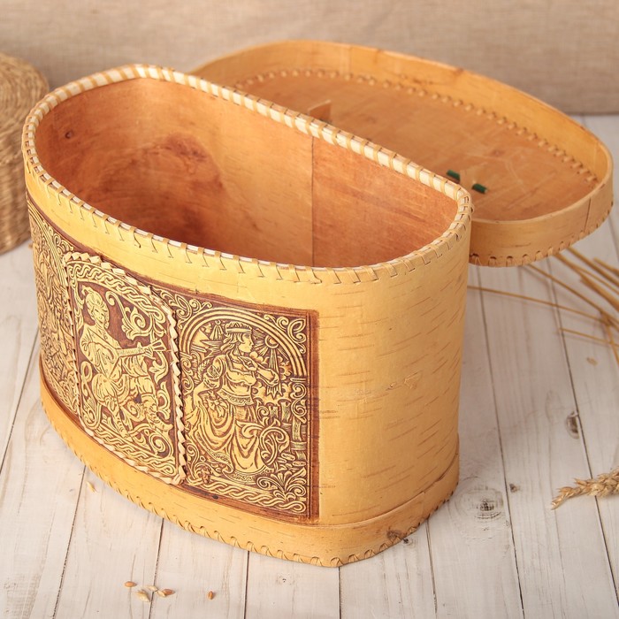 Хлебница «Скоморохи», на шарнирах, с ручкой, 23×27×20 см, береста