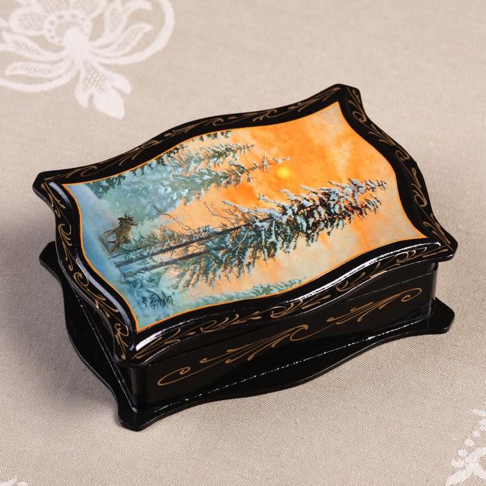 Шкатулка «Зимняя тройка», 10×14 см, лаковая миниатюра