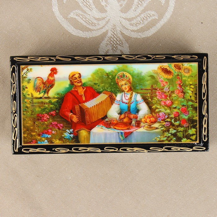 Шкатулка - купюрница «Деревенские песни», 8,5×17 см, лаковая миниатюра
