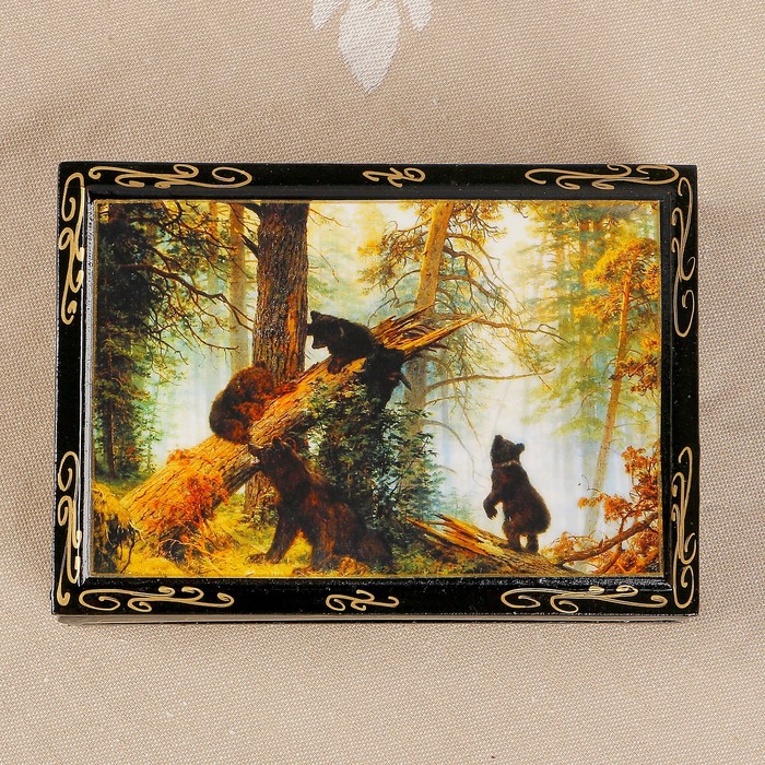Шкатулка «Мишки в лесу», 10×14 см, лаковая миниатюра